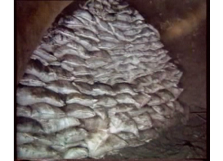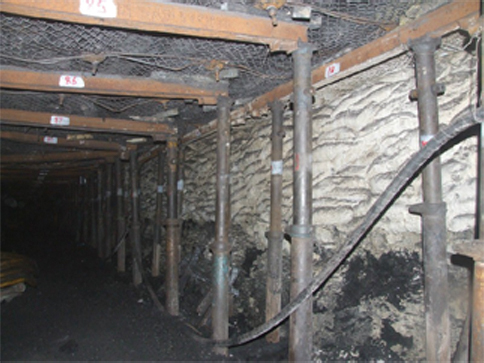 FSA料與干碎煤和水攪拌裝袋成墻的過程及徐礦集團北馬坊礦沿空留巷效果圖